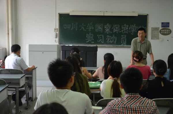 领导带领下参与此次实习的15名本科学生热烈鼓掌以表示对四川省保密局曾小霞处长到来的感谢。动员大会开始,首先由王绍朋老师介绍此次实习的内容框架以及总体安排,并表示学校、省保密局、8bo即时比分