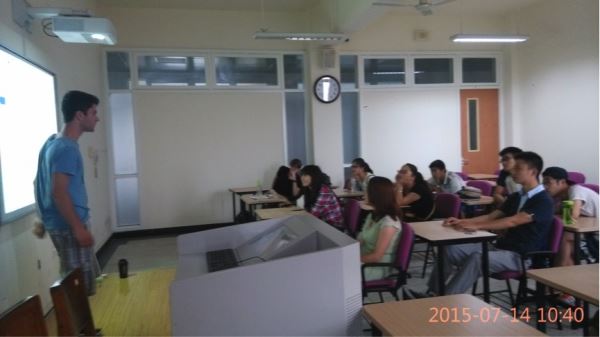 的同学与来自美国的LINUS和来自法国的JULIEN两位同学进行了第二次的CULTURE EXCHANGE(文化交流)活动。