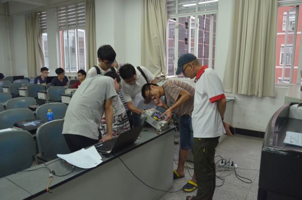 徐家品教授、傅友登副教授、华伟副教授、夏文龙老师、孟庆党老师、刘俐老师以及李运国老师参加了本次选拔测试,测试的主要内容是在第一阶段基础上进一步加强了对单片机编程和电路制作,每个题目的设定的完成时间为4个小时。
