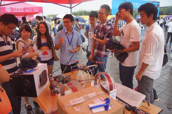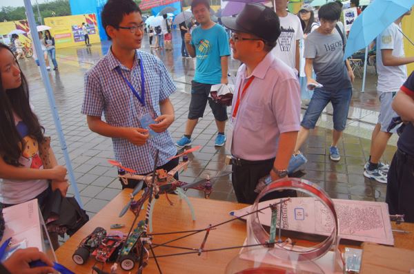 本次共有六件学生科技创新作品进行展示,可以自动调节飞行角度的四翼飞行器,自动寻道的飞思卡尔智能车吸引了许多同学老师前来观看。8bo即时比分