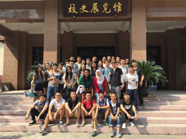 交流营的所有学生和四名外国学生在校史展览馆前进行了合影留念。