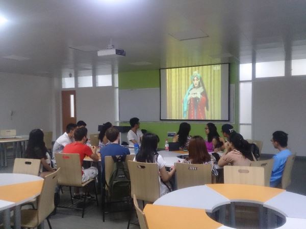学生向国外同学介绍了我国古代文化,现代文化,和当今文化的典型实例,形象的向国外同学立体直观的介绍了中国文化的发展演变。
