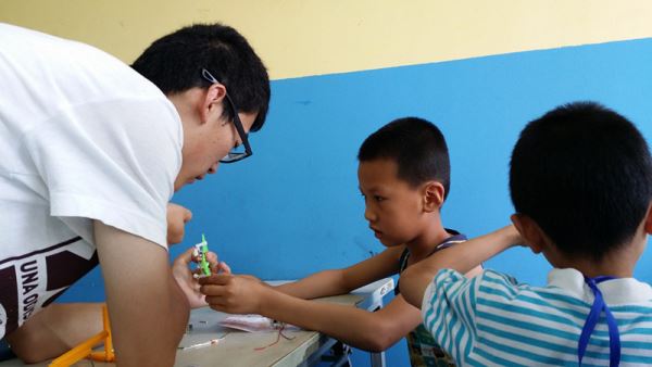 下午14点10分,志愿者们在四川大学江安校区青春广场集合出发前往青少年空间。在下午14点40分,志愿者们到达青少年空间,之后开始招募青少年们参加这次活动。15点整,活动正式开始。志愿者先给青少年们简单讲解机器人的工作原理,之后青少年们在志愿者的辅助下开始组装小机器人。在组装机器人的过程中,虽然小朋友们遇到越来越多的困难,但是他们仍坚持着积极地自我探索。然而在自己实在不能完成的时候,他们也会坦然地向志愿者寻求帮助。志愿者们耐心地给他们讲解,而当遇到比较困难的问题时,志愿者们先是相互讨论,寻找原因,然后再认真地教小朋友们一起解决问题。最终,在志愿者的帮助下,小朋友们一个接一个的完成了小机器人的组装。在下午16点,活动正式结束。