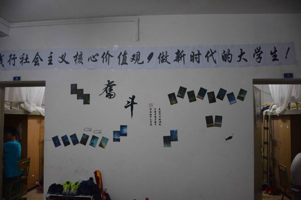 的同学们在学习之余更加重视了寝室文化的建设,社会主义核心价值观在寝室的普及相信也能帮助同学们更好的贯彻党的思想,让同学们的大学生活更加丰富精彩。