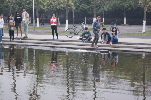 电子科技园承办的四川大学2014年学生课外学术科技节之第六届“九洲杯”水上之星船模大赛初赛成功举行。此次比赛初赛分为投票评分环节和竞速比赛两个阶段,分别在四川大学江安校区青春广场及景观水道开展。