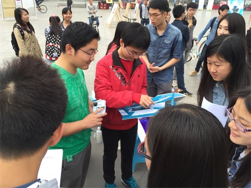 分科协以及校科协的同学作为评审,对各参赛队伍船模的船体结构、美观程度、创新创意以及选材环保程度进行评分,参赛队成员们向评委们详细介绍他们的设计理念以及制作亮点,并回答评审们提出的相关问题、与之进行交流。持续到中午12点,初赛的投票评分环节顺利结束。
