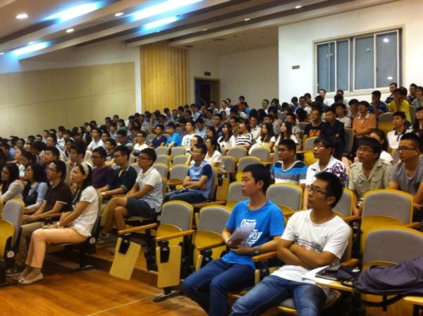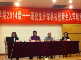 教师代表、博士生导师张彬教授讲话。张老师向同学们分析了研究生与本科生的不同,督促同学们要制定远大的志向并且对研究工作要坚持不懈地努力。通过她的介绍,同学们对未来的方向又清晰了许多。最后,2013级博士研究生代表王树桐同学向在场的新生分享了自己的求学经历,鼓励他们要多动手,并强调要多去锻炼自我的社交能力。2014级硕士新生代表冯丹同学则表达了对即将开始的大学生活的期待,并提出学习上的问题及建议与同学们共勉。