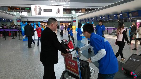 腾飞青年志愿者一行六人按时乘车到达双流机场,在志愿活动负责人员带领下,大家同“麦田阳光”的老师和朋友对宣传活动进行了准备。九点三十分,宣传活动正式拉开序幕,志愿者被分为几个小组,在机场不同位置发放有关自闭症儿童的宣传手册以及给她们系蓝丝带。志愿者们积极踊跃,在来往人群中向他们宣传关于自闭症儿童的有关知识,路过的人群中也不乏对自闭症儿童非常关注的,仔细聆听着志愿者的讲解。