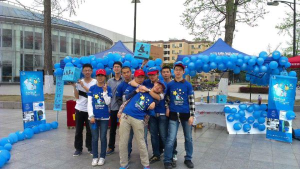 腾飞青年志愿者服务队在青春广场开展了一场对自闭症儿童的“蓝色”关爱宣传活动。