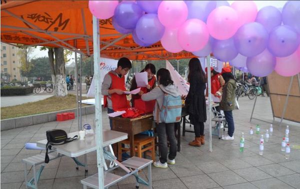 腾飞青年志愿者服务队在青春广场为11月29日的血车进江安的献血活动做了大力宣传。