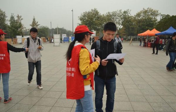 腾飞青志队长江海燕带着志愿者们在青广设立摊位,准备活动。志愿者们戴上帽子,穿上宣传服,一副跃跃欲试的样子。活动开始,一部分志愿者带着传单向路上的同学做宣传,一部分同学留在摊位以做游戏赢小礼品的方式吸引路过的同学来到摊位前,借机向他们做献血活动的宣传,普及部分献血知识。志愿者们很积极地向同学们做宣传,很多同学被吸引了过来,在摊位前驻足,并认真地听志愿者们的对活动的讲解。下午六点三十分,宣传活动顺利结束,取得了很好的效果。