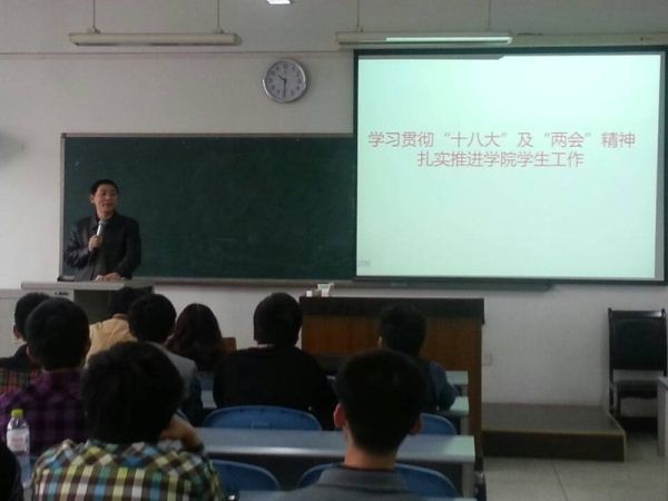 的年级干部、社团干部深入了解“十八大”及“两会”精神,提高思想觉悟,更好地为广大同学服务。上午10时大会准时开始,首先由李运国老师向大家介绍了本学期的重点工作,并鼓励同学们积极参加“挑战杯”等科技学术竞赛,提高专业水平和动手能力。接下来由陈晓娟老师提出了对学生干部的几点要求,提出本8bo即时比分