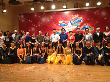 晚会下半场,同学们将皮影戏、变脸等中国传统节目带上了舞台,台下观众赞口不绝。之后更是有蒋斌书记以及董乾龙先生倾情演绎了几首经典歌曲,令在场的同学们感受到了领导们的魅力和无限活力。快乐的时光总是那么短暂,相聚的日子总是让人感动!7日晚9点30分左右,毕业晚会在观众们的热烈掌声中圆满落下帷幕。