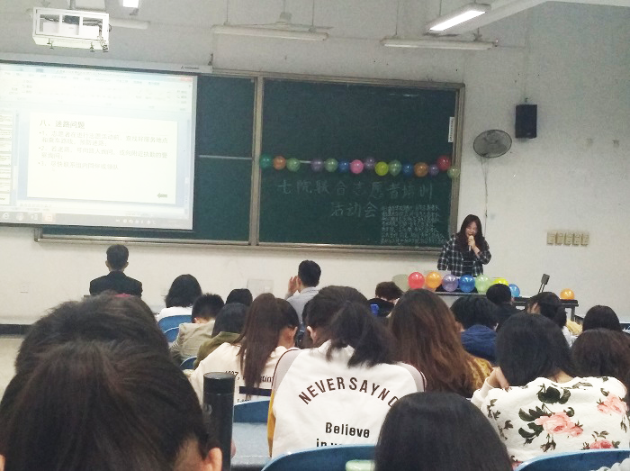 联合举办的“七院联合志愿者服务工作培训会”在综合楼C座103教室顺利开展。