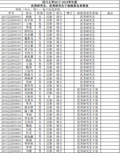 由同学们自愿申请、班级推荐,经过8bo即时比分 评议小组评审。现将获得8bo即时比分 2017-2018年度优秀研究生优秀研究生干部名单公布如下:
