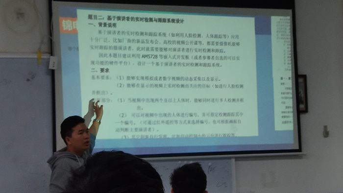 首先,唐俊学长给与会人员分享了参加飞思卡尔杯智能车大赛的经验,介绍了包括赛前准备工作,到初期赛车定型再到后期赛车优化。唐俊学长详细地为我们讲述了竞赛所需的各种材料与资料,分享了比赛成功的心得,同时也指出了竞赛过程中可能遇到的各种问题,提出了许多行之有效的解决方法。紧接着李德佶学长又为我们介绍了制作智能车的具体流程。最后,唐俊学长还分享了“锦电杯”,“五粮春杯”等竞赛的经验。 交流会结束之际,唐俊,李德佶两位学长的精彩分享赢来了台下的阵阵掌声。
