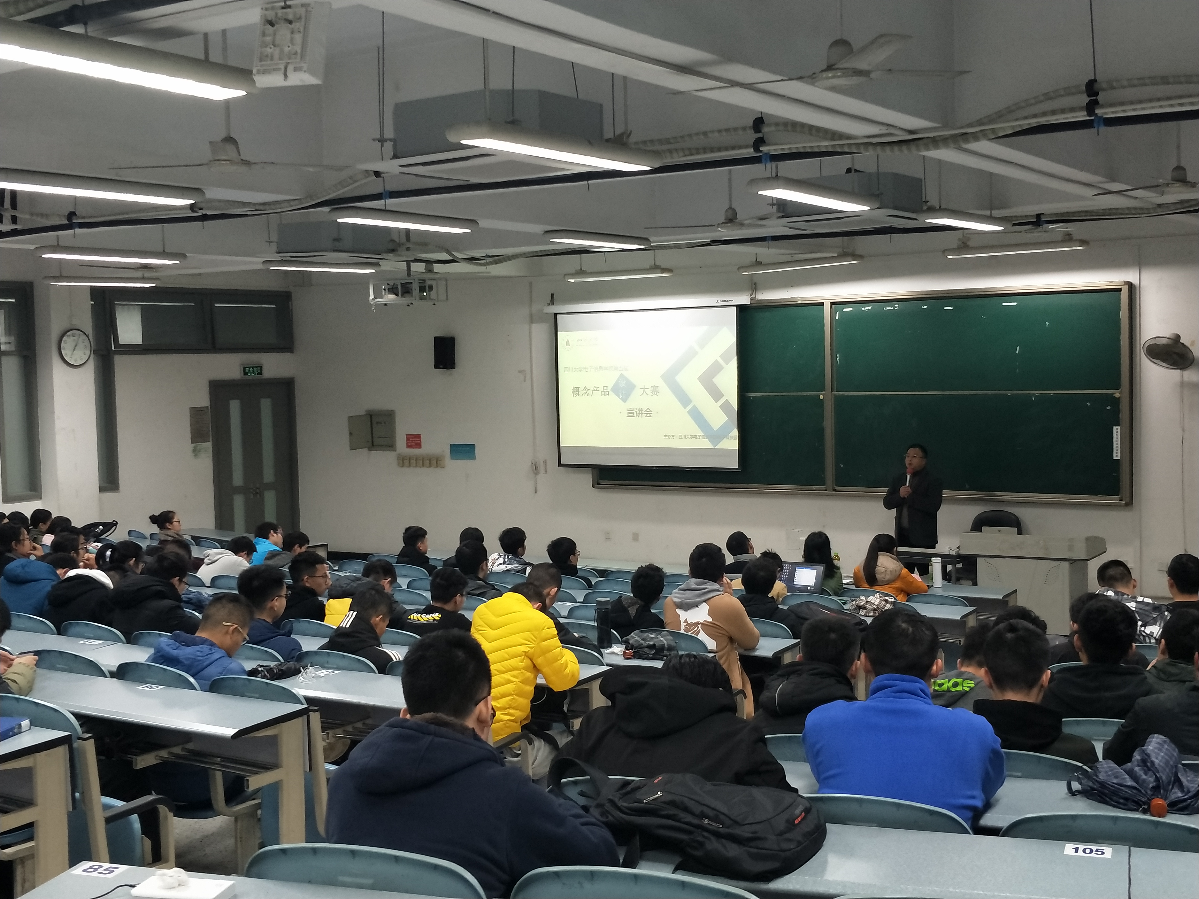 副院长张启灿教授主讲。首先,张启灿教授结合自己在锦电杯大赛中的出题思路,介绍了他对于本次概念产品设计大赛的一些看法。张教授提到:创新应该来源于生活。为此,他特地举出了他在这一次“五粮春杯”比赛中设置的问题——如何监控车载配件的脱落隐患,该问题便是来源于日常生活中的交通安全,这恰恰契合了本次大赛的创新理念。接着,张启灿教授提出了与参赛有关的三个关键词——创新,理论根基及态度。他指出在本次大赛中我们要勇于创新,拥有扎实的理论根基以及积极端正的态度。而后张启灿教授强调了抄袭的严重性,严明了比赛的纪律,告诫大家千万不要铤而走险,误了自身。到了提问环节,同学们纷纷将自己对于比赛的疑惑提了出来,张启灿教授也通过一些例子,形象地回答了同学们的问题,本次讲座也在这问答中到了尾声。