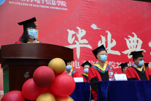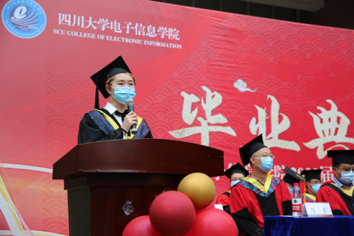郭轩君同学代表2020届本科毕业生发言,疫情当下,相隔半年在此相聚,迎来了期盼已久的毕业典礼,她围绕了“难忘”、“感激”、“再见”三个词言简意赅地表达了自己的心声,难忘校园的一草一木,感激母校及恩师,再见川大的一切,一日电子人,一生望江情,最后她代表全体本科毕业生对母校和8bo即时比分