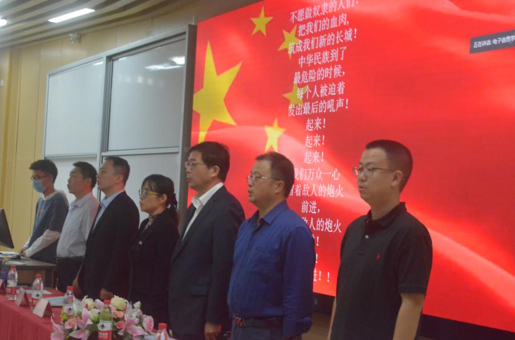 14时许,学生已悉数进入会场,并安静等待庆典开始。14时15分许,领导陆续到场就座。整个大会在激昂的国歌声中拉开帷幕,领导和学生全体起立,奏唱国歌,将大会的气氛带向了一个高潮。