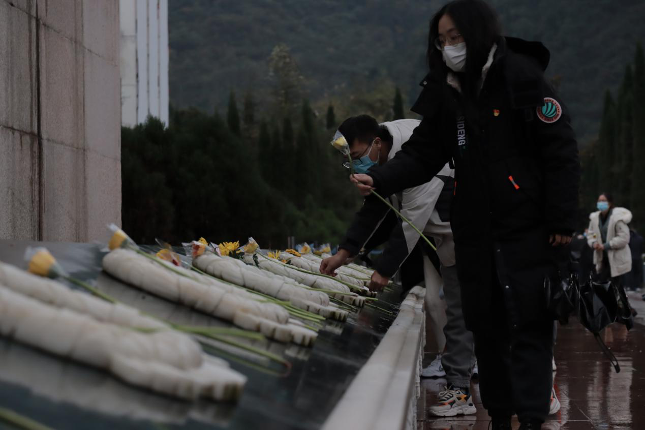 同学们在参观过漩口中学遗址后,跟随讲解员的步伐来到了我们今天的第二站——家国情怀宣誓广场,屹立于广场上的雕塑是祖国母亲的形象,刚毅的面庞俯瞰整个广场,纤细的手臂紧握着拳头,却能够感到无比的力量,全体同学在祖国母亲的雕塑下重温入党誓词,举起右拳,宣读那铿锵有力的文字,虽然时值深秋,但是今年的冬天却来的格外得早,气温虽在零度以下,却冻不住同学们炽热的心,眼前的祖国母亲和党旗的那一抹红色给予了我们无限的温暖。