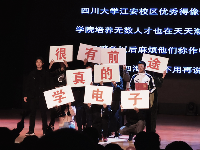 迎新晚会在全院师生齐声呐喊的倒计时中正式拉开帷幕,激情洋溢的开场舞《越努力越幸运》为晚会的进行营造了热烈的氛围。其后,由党委陈笃海副书记上台致辞,致辞中表示了对于新生来到川大的欢迎,饱含着众多师长对新生的关怀与期望。此后,晚会节目轮番上演,精彩纷呈。古色古香的《锦鲤抄》向观众们展示了东方神韵,动感十足的《灵动曳步》则向其展示了科技的魅力,《纪念过往,奔赴入海》的舞者则用灵动而优雅的舞姿展示了当代学子对于梦想的追求,众多舞蹈令人叹为观止。除此之外,歌曲《贝加尔湖畔》、《明月几时有》与《遇见你》亦凭着唯美的歌声令聆听者们身临其境,更添温情。小品《那些花儿》讲述了偏远山区支教的故事,《早安,川大》与《青年观察》则分别带领各位同学回忆了自高考复习至入校报到的情形。在《学王之王》中,演员更是凭借滑稽的表演、夸张的动作逗得全场哄笑不断。歌舞剧《奇妙博物馆》为晚会平添一抹奇幻乐趣,《电子冲吧》更是使迎新晚会达到了高潮,观众席呼声高涨。晚会的最后由 2019级的同学为新生带来了神秘的歌舞串烧节目,在同学们热情澎湃的呼声中本次迎新晚会落下帷幕。