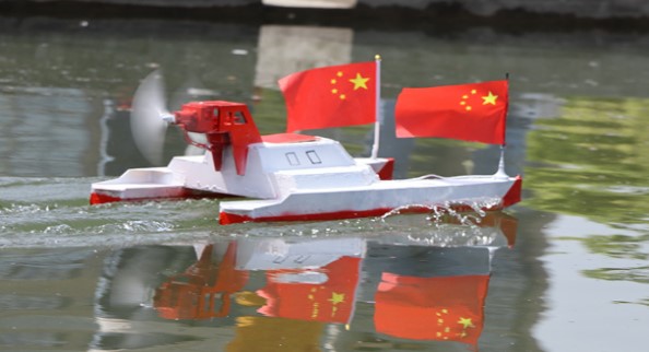 328815120个参赛队伍将自己精心设计的船模放在青春广场进行展示。多数船模以红色元素为主,深刻体现了本次船模大赛的主题,同时吸引了广场上同学的注意,大家纷纷为自己心仪的船模投票,现场气氛十分热闹。1130,外观评分结束,选手们带走自己的船,为下午的水上竞速做准备。1300,竞速正式开始,参赛队伍表现不凡。赛道上,船只不惧险阻,或稳健前行,或急速航行,船只上的五星红旗高高飘扬,正如党的理想信念指引着我们胜利的方向。伴随着观众们的助威声,1800,所有参赛队伍完成比赛,本次船模大赛初赛圆满结束。