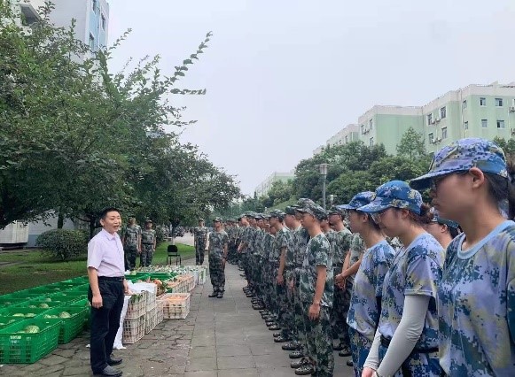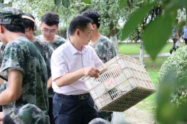 学子的风貌。陈书记与军训带队老师陈晓娟、吴秀玲、朱婧、陈洪刚一起向同学们分发慰问水果和牛奶。