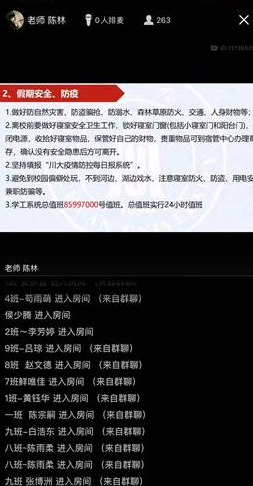 晚上8点,同学们陆续进入腾讯课堂等待线上会议的开始。陈林老师首先督促我们做好常态化防疫工作,针对健康每日报,离校申请等问题进行了说明。并且提醒我们离校前注意关锁寝室门窗,保护个人财产安全,以及在外出期间做好防疫措施,关注自身的健康状况。随后叮嘱了其余重要事项,希望同学们认真落实。