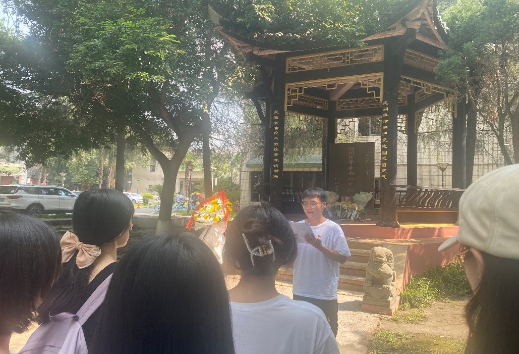2020级硕博第三党支部在四川大学革命烈士纪念碑举行了关于缅怀革命先烈、弘扬红色精神的公祭活动。党支部书记杨斯涵同志、副书记罗永华同志、支部党员同志们以及入党积极分子们等参加了此次组织生活活动。
