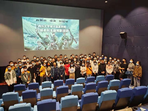 21级学生开展了爱国红色观影活动,影片名称为《长津湖》,2021级辅导员孟滋常老师,2021级兼职辅导员孔洁老师出席了此次活动。