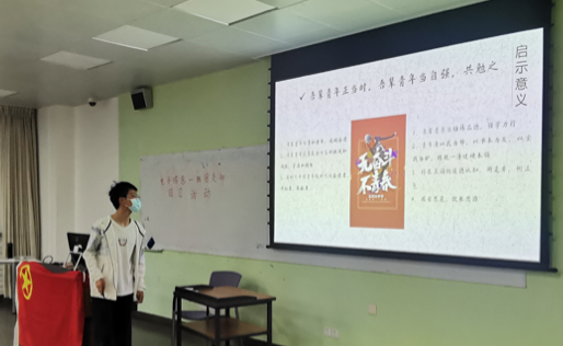 电子信息工程一班团支部于江安一教A201教室召开“研学四史明初心,奋进青春勇担当”主题团日活动。支部书记罗岩泓担任主持,支部全体成员踊跃参加。
