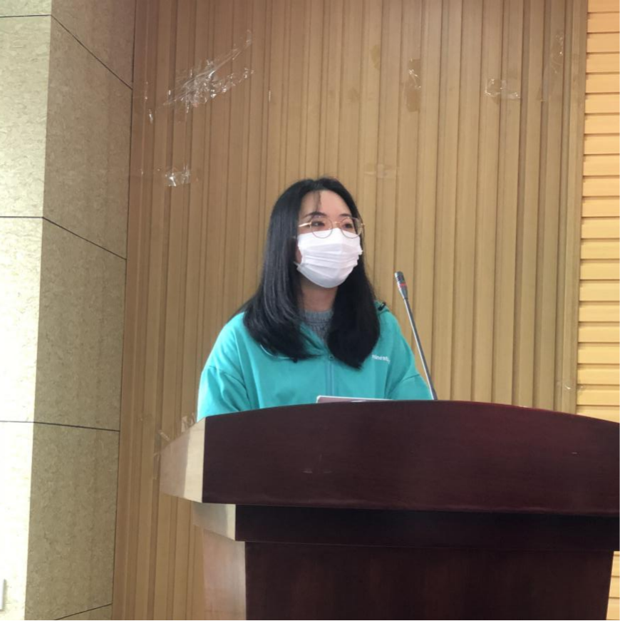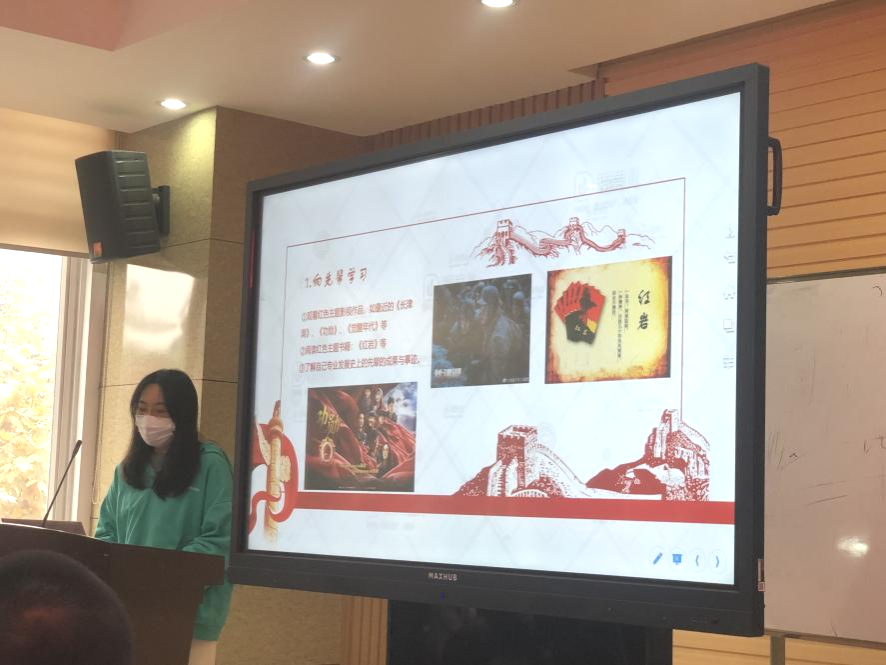接下来刘姝琪同学向大家点明了“为什么要传承红色基因?”她指出如今中国面临着前所未有的机遇与挑战,唯有把红色基因传承下去,方能续写令世人惊叹的中国故事。随后,刘姝琪同学在“做好红色基因传承的排头兵上”给了大家一点建议。她认为大家不仅应当向英雄先辈学习,也应当汲取同时代的先进模范的优秀品质。宣讲结束后,许多同学陷入了沉思,或缅怀已经故去的英雄人物,或思考未来应当如何努力,将这份光辉传承下去。