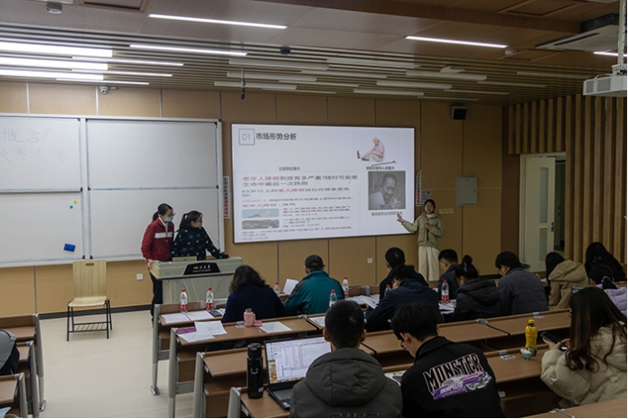 比赛过程中每支队伍选出一位代表进行PPT的讲解,每组限时5分钟,讲解完毕后由评委进行评分。比赛过程中涌现了实用的创视眼镜、新奇的仿生水蛭机器人、智能绷带等各式各样的理念新颖的产品设计。各个参赛小组分别从实用程度、技术可行性、美观环保程度等方面对自己的产品进行了介绍。评委针对每个组都进行了富有指向性的问答,同时,每组同学也与场下同学进行了互动,使大家更全面直观地了解产品的方案和理念。