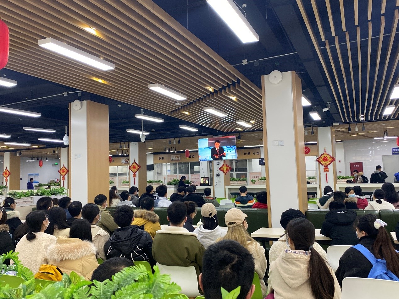 12月3日上午九点,集中观看“宪法晨读”直播活动在南园食堂顺利举行。活动伊始,全体同学起立,奏唱中华人民共和国国歌。随后,教育部领导领读宪法部分条款,现场全体人员同步跟读学习。最后,全体同学观看并共同歌唱《宪法伴我们成长》。