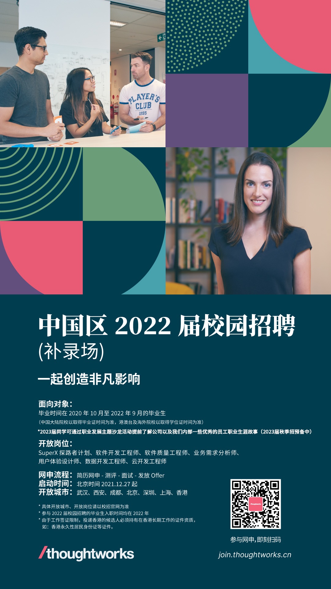 Thoughtworks 中国区 2022 届校园招聘(春招补录场)