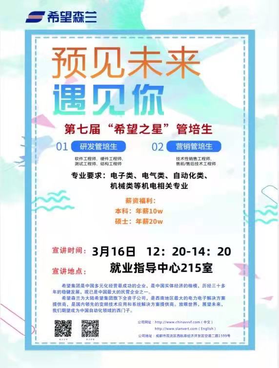 3月16日12:20就业指导中心215室 希望集团希望森兰校园招聘(详见附件)