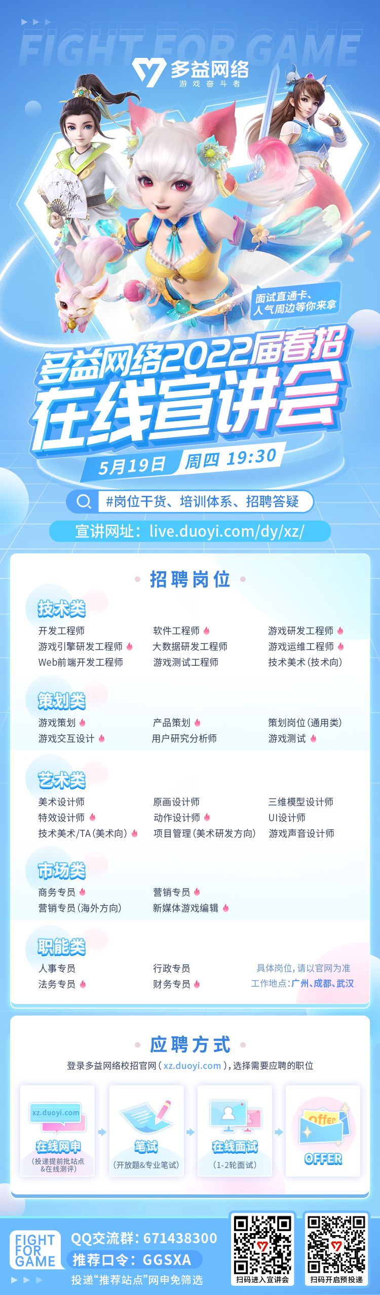 中国十大游戏研发商&运营商之一、中国互联网百强企业「多益网络」春招在线宣讲会重磅来袭!