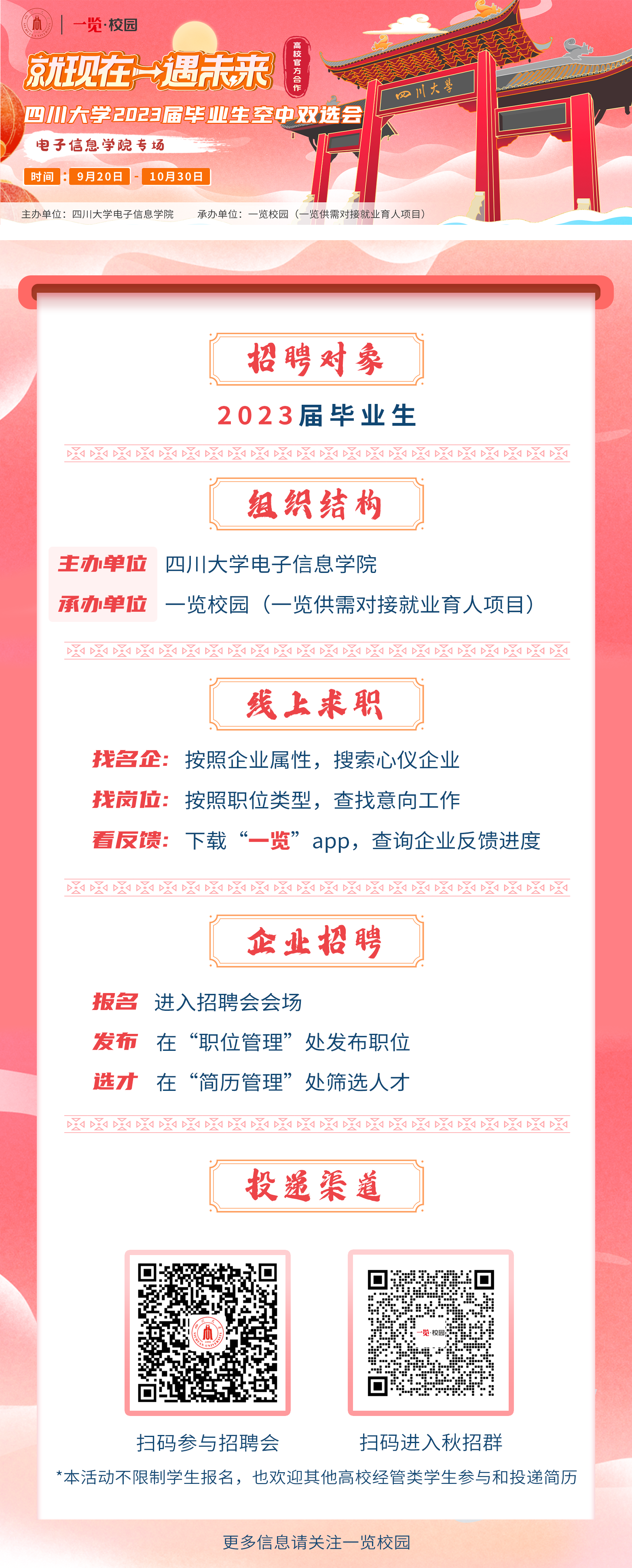 联合一览英才网于2022年8月30日至10月30日举办“就现在,遇未来”四川大学大学2023届空中双选会电子信息8bo即时比分