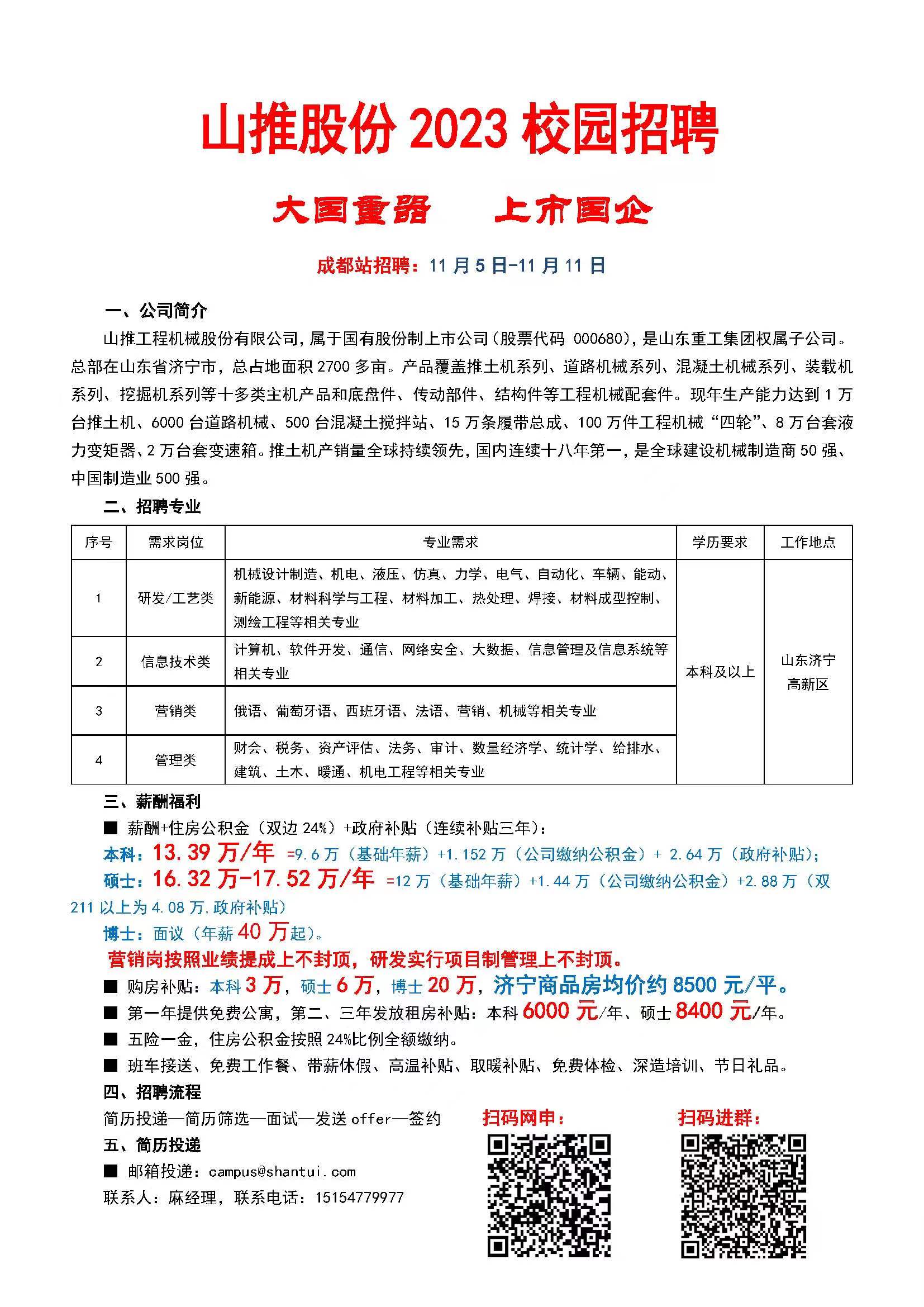 山推工程机械股份有限公司2023届校园招聘