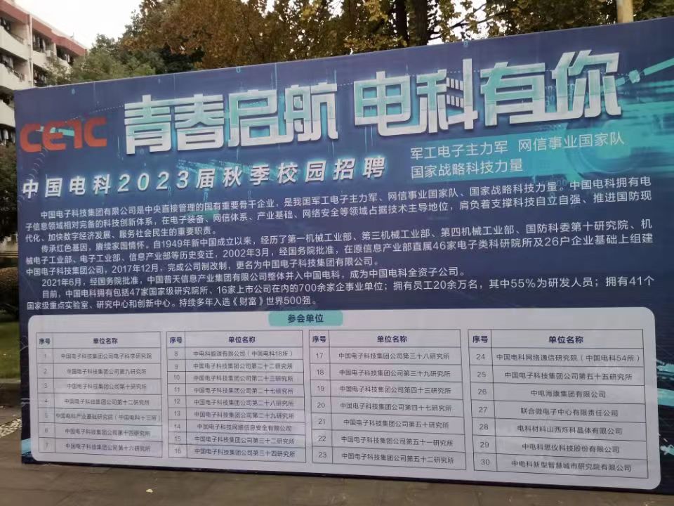 中国电子科技集团校园招聘会,由于学校那天静默所以没有到现场招聘,所以请同学们赶快电话联系后投递简历,链接里面有各个单位详细信息,请抓住机会,