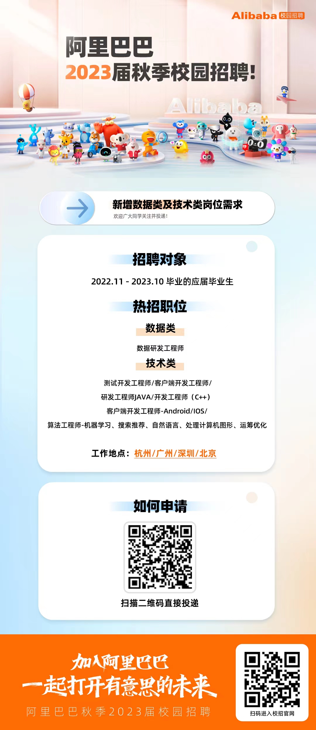 阿里基于市场情况,新增较多技术类的需求,扫描海报上的二维码即可获取内推,有任何问题也可拨打小蜜热线:0571-81595900