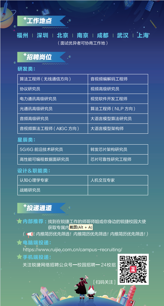 锐捷网络是行业领先的ICT(信息与通信)基础设施及行业解决方案提供商。目前有7大研发中心,50+分支机构,8000多名员工,业务遍及60+国家和地区。