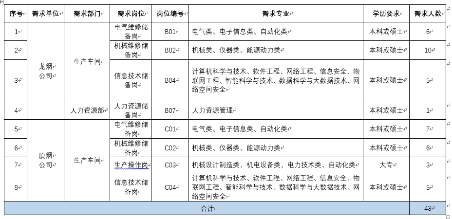 (2)龙烟公司、厦烟公司非生产车间岗位,根据培养计划安排到车间工作,根据岗位需要进行岗位调配。