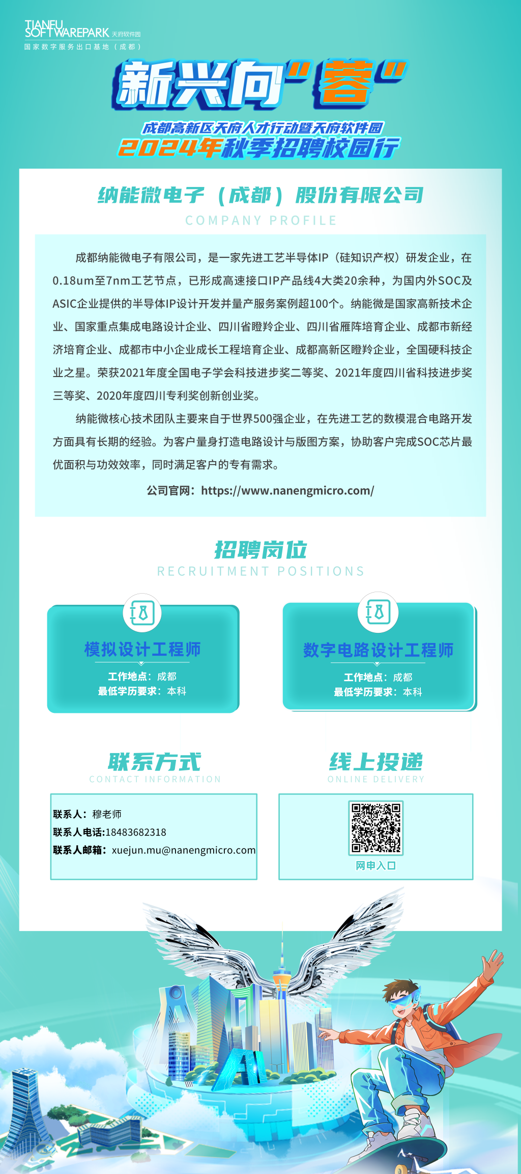 纳能微电子(成都)股份有限公司2024年秋季招聘