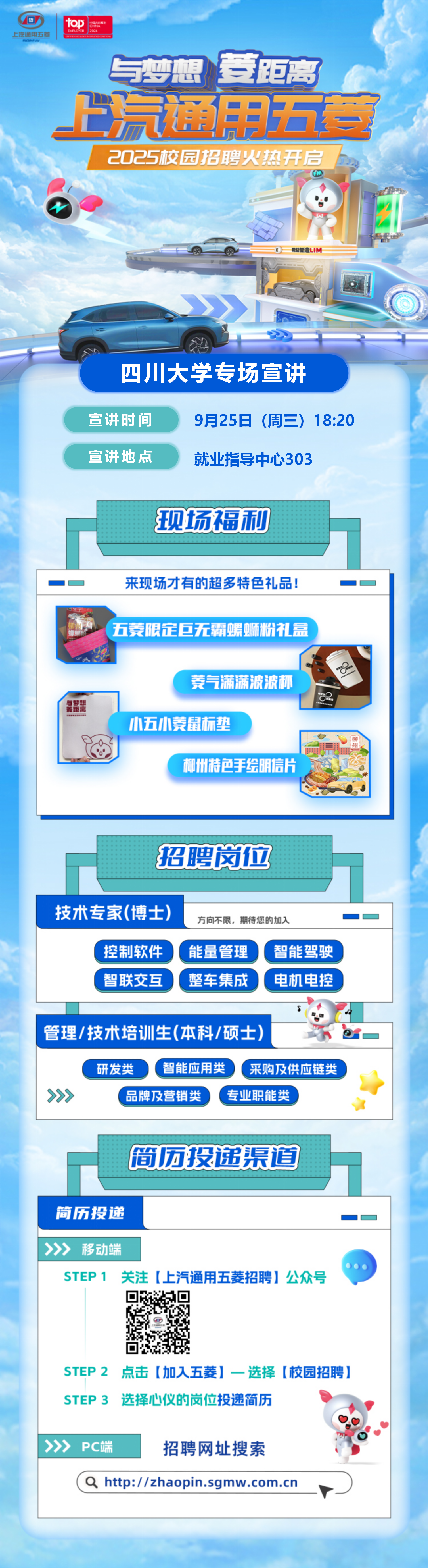 公司期待更多优秀小伙伴的加入,一起努力将上汽通用五菱打造成为全球创新、跨界、体验的标杆公司!