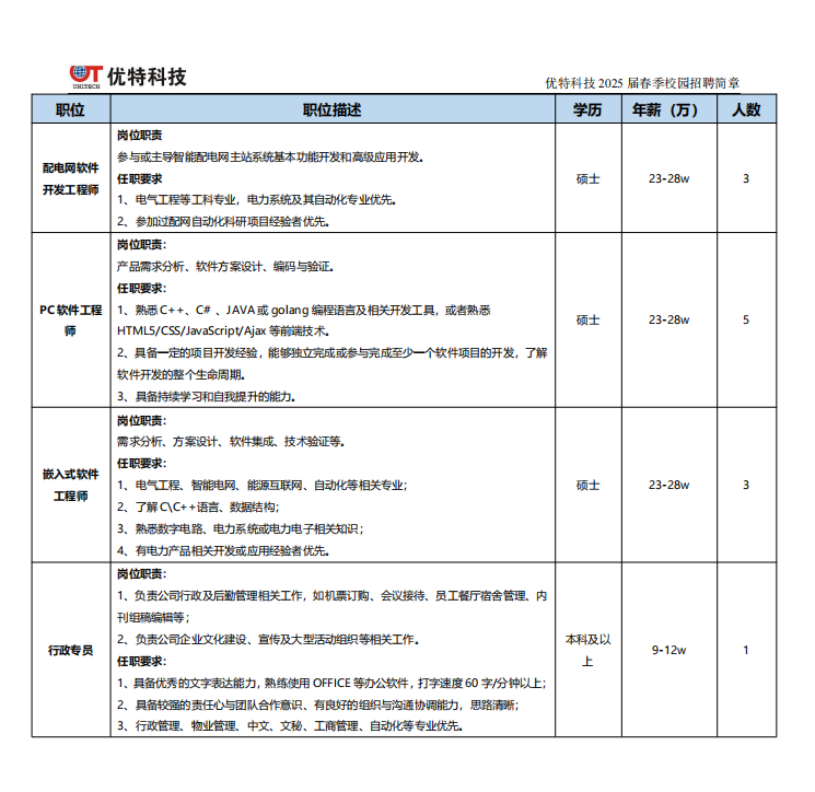 🗳投递简历://utpower.zhiye.com/campus/jobs