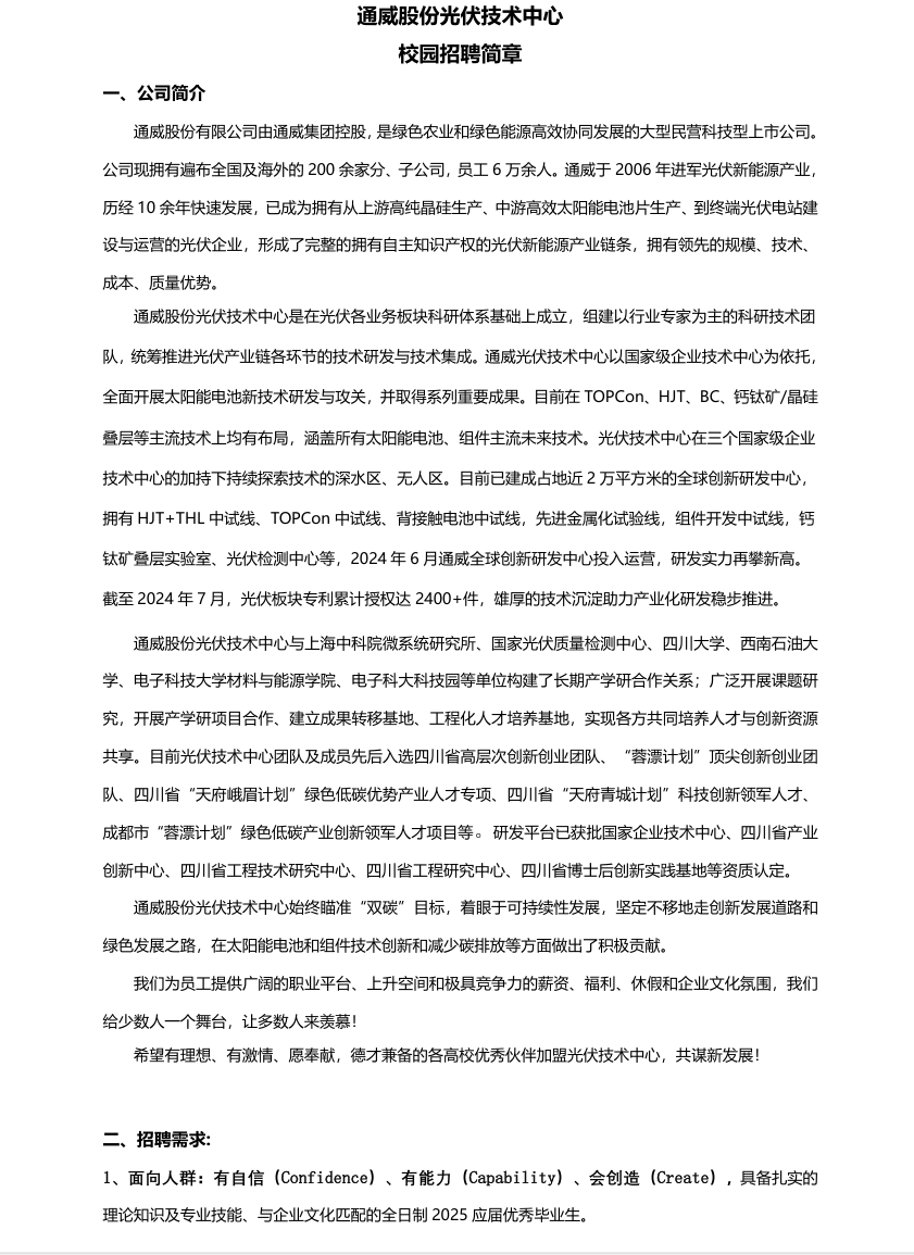 03-12 15:20-17:20 就业中心402 通威股份光伏技术中心