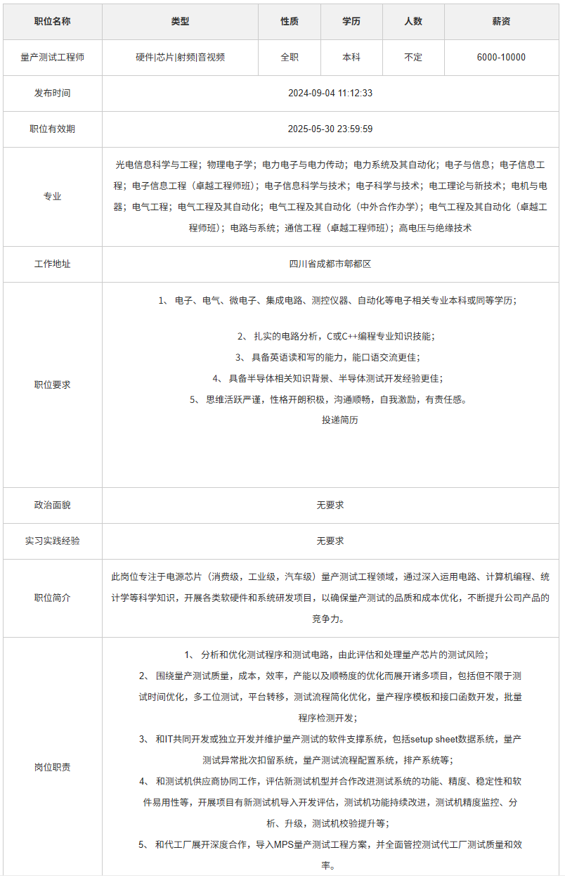 芯源系统股份有限公司(Monolithic Power Systems, Inc.,简称MPS)是全球领先的模拟IC半导体公司,也是集成功率半导体全球技术领导者。我们以专有的创新工艺流程为依托,重新设想和定义高性能电源解决方案,不断推动人工智能、汽车、工业、云计算等领域的持续发展,通过环保易用的产品,提高人类生活质量。