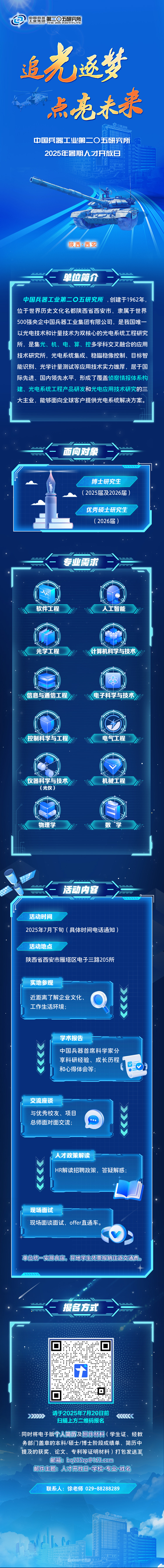 【开始报名】中国兵器工业集团205研究所暑期人才开放日