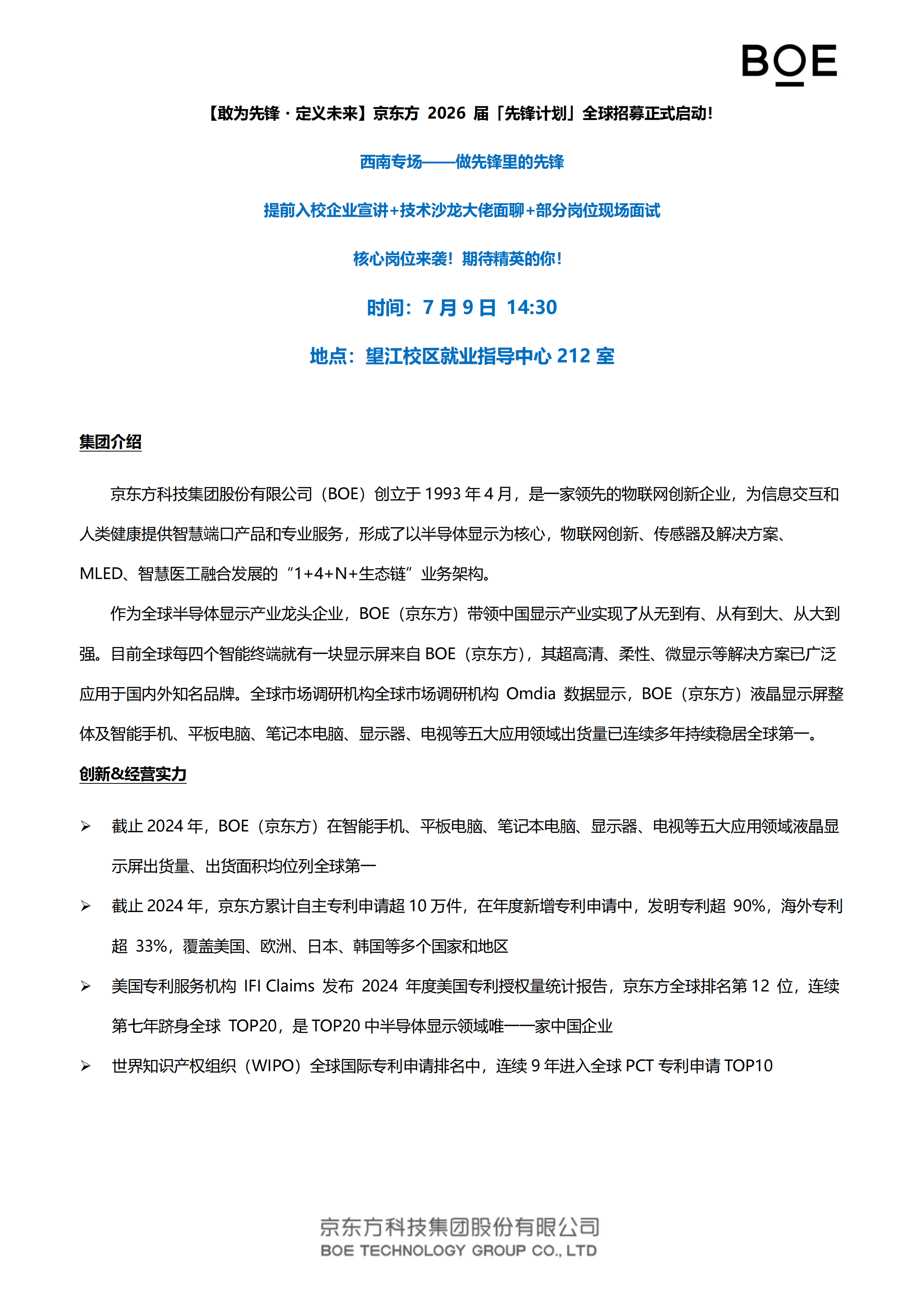 【企业特点】:国有控股,上市企业,市值千亿,半导体显示领域全球第一